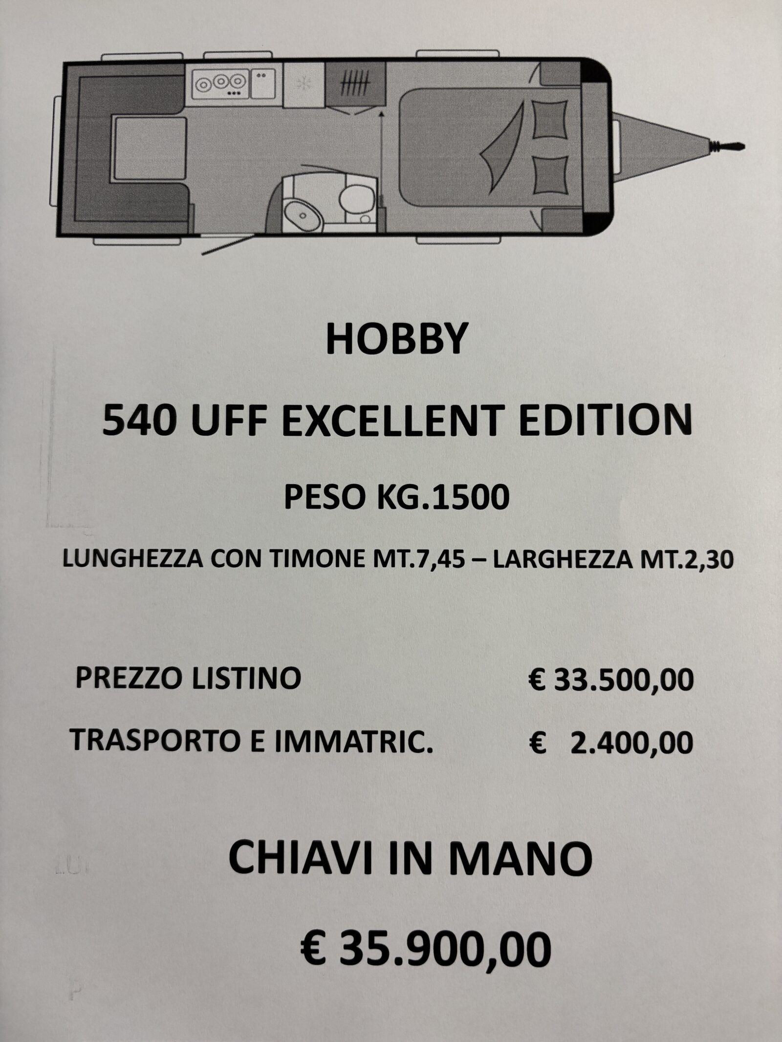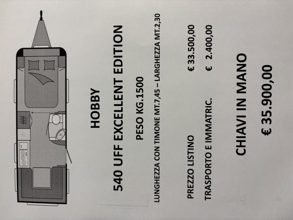Contattaci per richiedere informazioni su Hobby 540 uff Excellent Edition